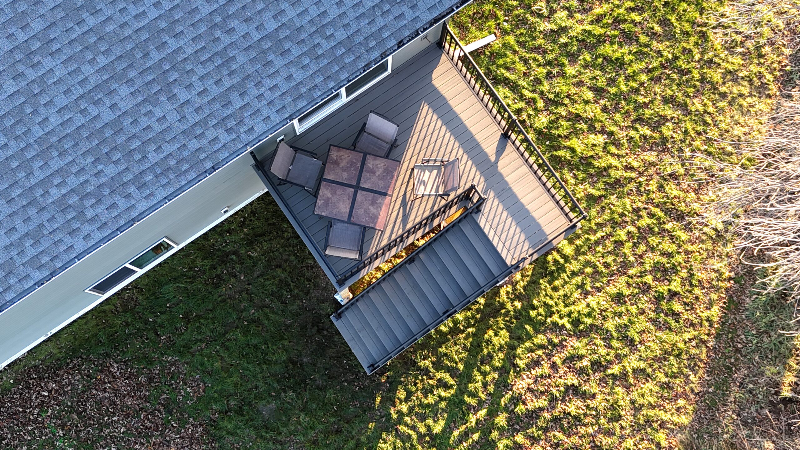 TimberTech deck added to match new build in Delano, MN Composite decking in a warm brown shade (made to look like natural woodgrain), along with black railings, perfectly complements this new construction home. Products used: TimberTech Terrain decking in Silver Maple Westbury handrail